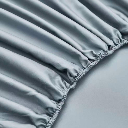 Satino paklodė su guma 180×200×25 cm + 2 pagalvių užvalkalai - melsvai pilkšva
