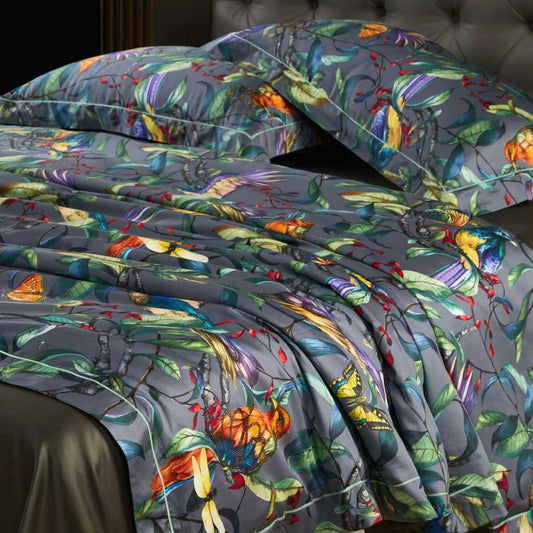 VIENGULĖ Egipto medvilnės Tinginio Patalynė™ - neįvelkamas patalynės komplektas su šilko antklode "Paukščiai"