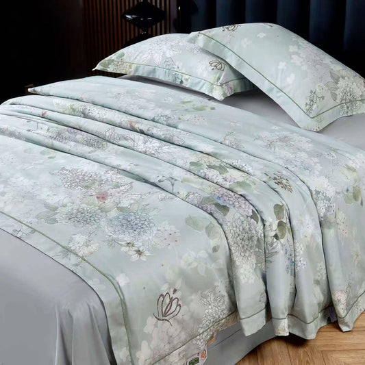 Dvigulė Egipto medvilnės Tinginio Patalynė™ - neįvelkamas patalynės komplektas su šilko antklode "Hortenzijos"