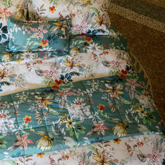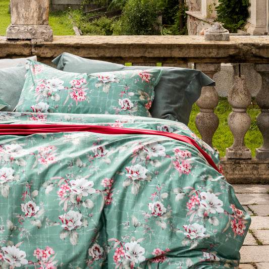 Premium satino patalynės komplektas King Size 250x200cm 2 dalių, "Benedict" Karališka povo žalia - (Pagaminta Italijoje)