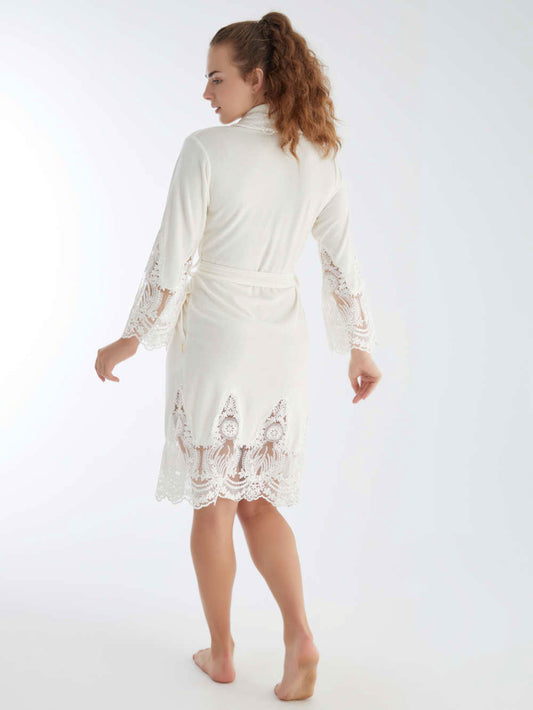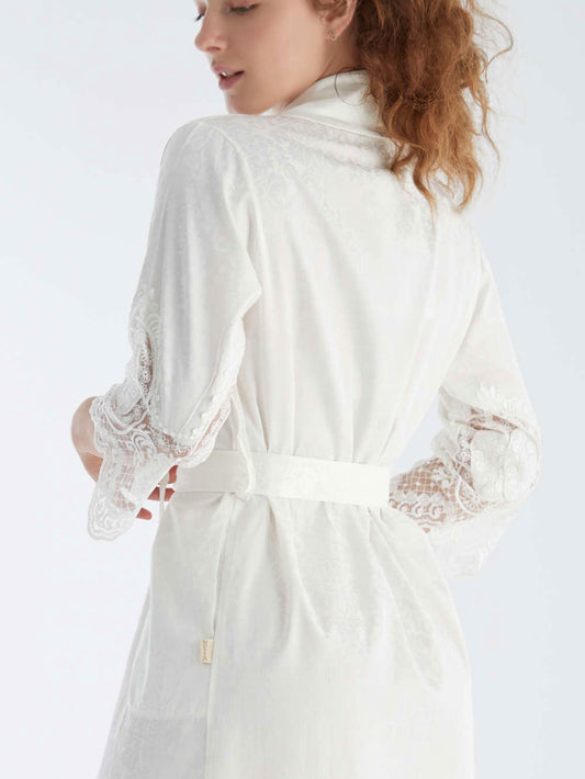 ŽAKARDINIS CHALATAS MOTERIMS SU NĖRINIAIS - BOUDOIR WHITE - M, 3XL