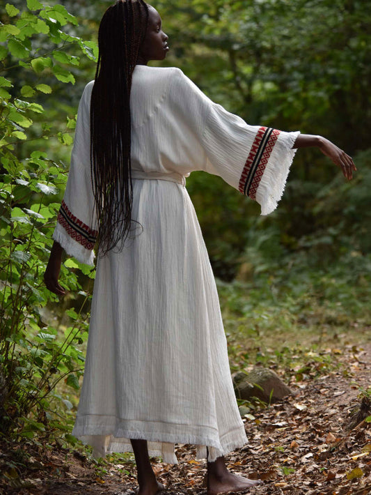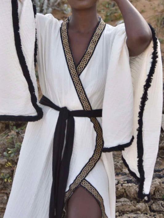 RANKŲ DARBO SUKNELĖ-KIMONO-CHALATAS "CLEOPATRA" (VIENAS DYDIS S-L)