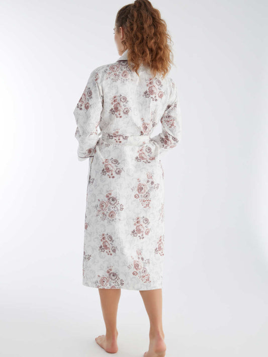 VAFLINIS BAMBUKINIS MOTERIŠKAS CHALATAS - FLORA - L/XL-3XL