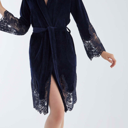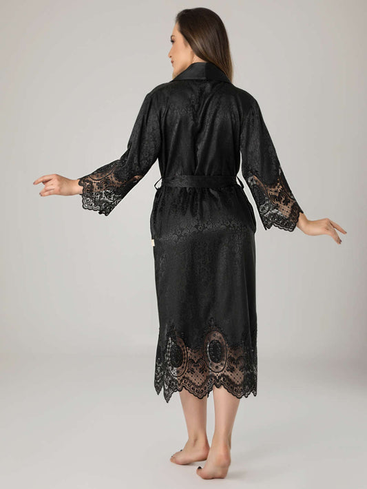 ŽAKARDINIS CHALATAS MOTERIMS SU NĖRINIAIS - BOUDOIR BLACK - M - 2XL