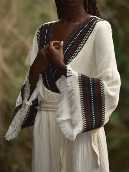 BAMBUKINIS CHALATAS SU GOBTUVU "JUNGLE WHITE" - 2XL