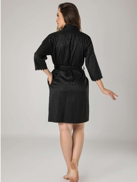 ŽAKARDINIS CHALATAS MOTERIMS SU NĖRINIAIS - LILY BLACK - M-2XL