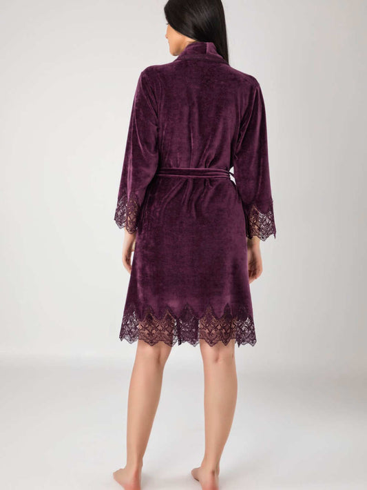 Moteriškas chalatas su nėriniais iš natūralaus bambuko pluošto - Forest Purple L/XL-4XL