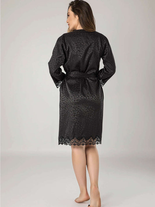 ŽAKARDINIS CHALATAS MOTERIMS SU NĖRINIAIS - ARIANA BLACK - M - 2XL