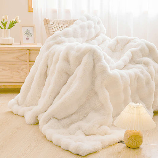 Minkštas banguoto dizaino prabangiai atrodantis aksominis pledas 200x230cm - Baltas