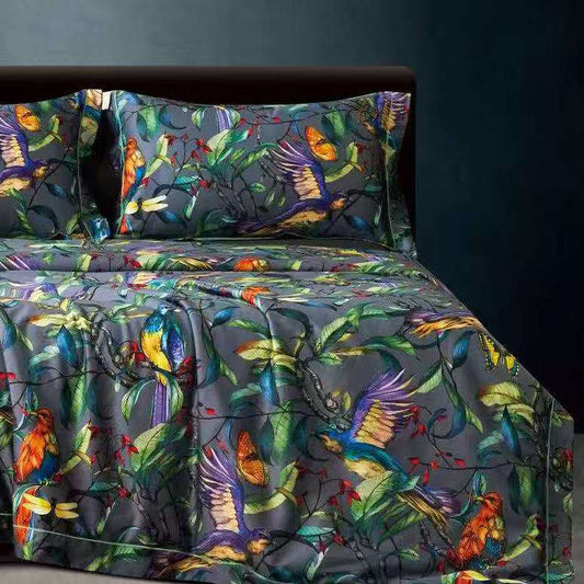 Dvigulis neįvelkamas Tinginio patalynės™ komplektas su šilko užpildu - Rojaus Paukščiai