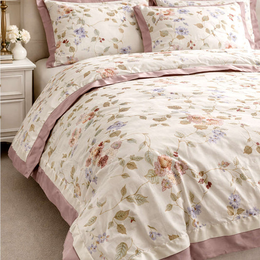 Dvigulis Dvipusis Neįvelkamas Premium Tencelio Tinginio Patalynės Komplektas su šilko užpildu - Morning Rose