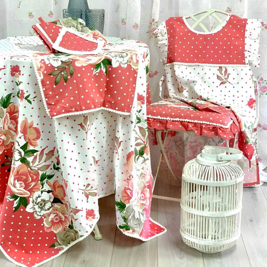 5 dalių medvilninių rankšluosčių rinkinys su nėriniais 1x 100x150cm, 2x 60x110cm + 2 x 40x60cm - Helen Valentina - Rose (Pagaminta Italijoje)