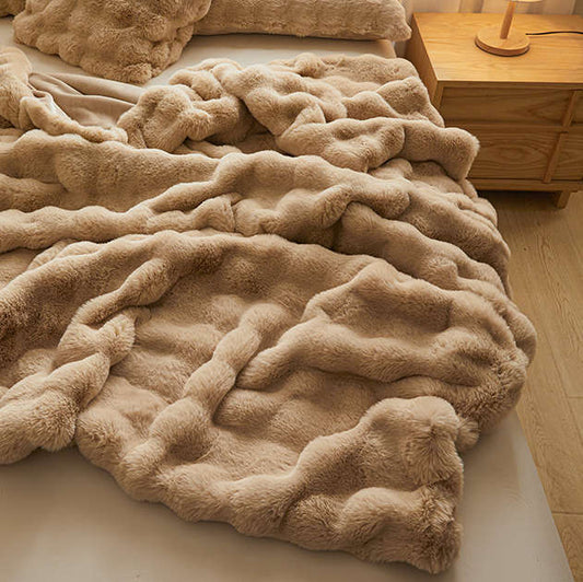 Minkštas banguoto dizaino prabangiai atrodantis aksominis pledas 200x230cm - Nude