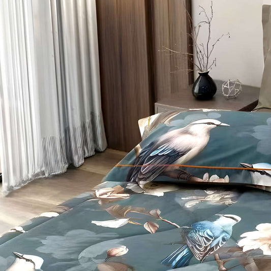 Šeimyninis Egipto Medvilnės Tinginio Patalynės komplektas su šilko užpildu - MAGIC BIRDS