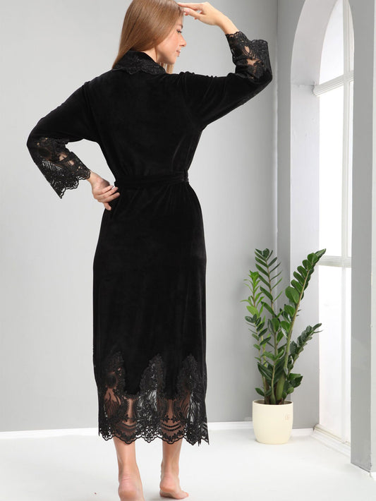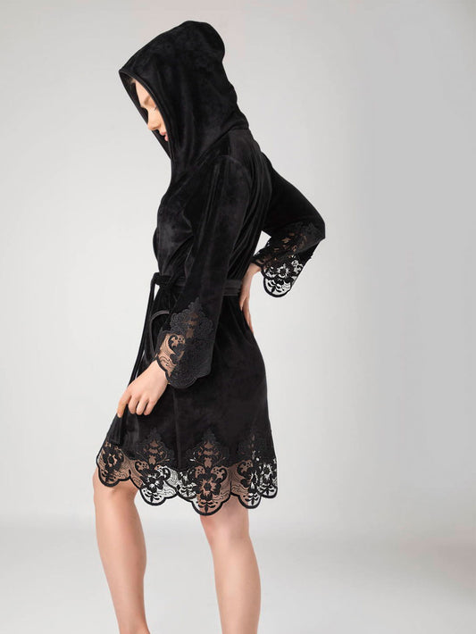 NĖRINIUOTAS BAMBUKINIS CHALATAS "ELISA BLACK" - LXL