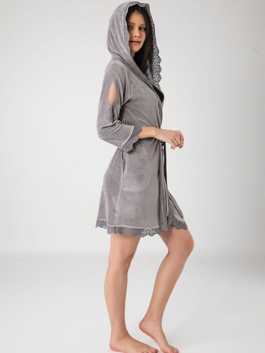 NĖRINIUOTAS BAMBUKINIS CHALATAS "ELISA GRAY" - M, L/XL