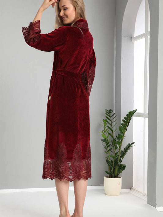 NĖRINIUOTAS BAMBUKINIS CHALATAS "QUEEN BURGUNDY" - 2XL, 3XL