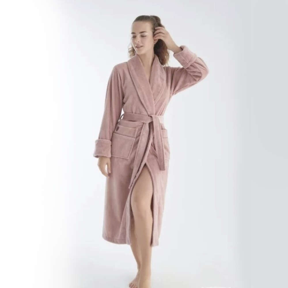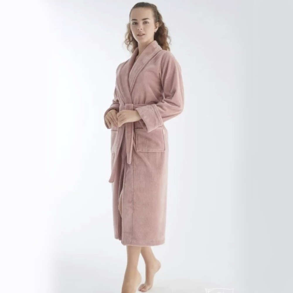 Jaukus, nepaprastai švelnus ir storas chalatas, į kurį norisi įsisupti visais metų laikais. Chalatas dekoruotas logotipu, kanteliai apsiųti pynute.