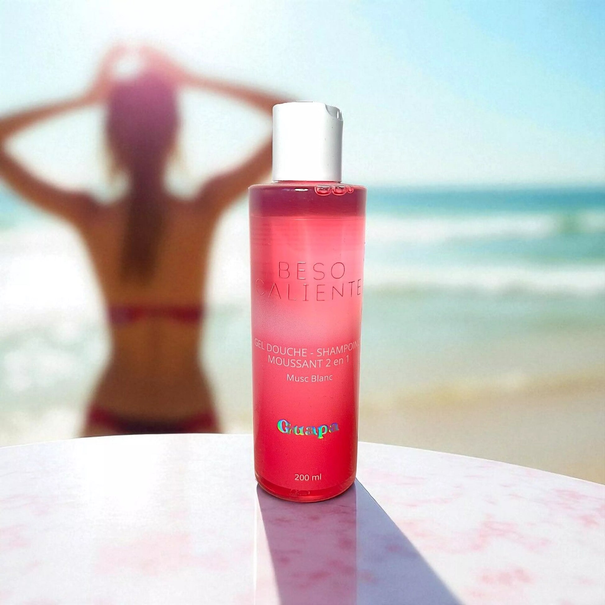Guapa BESO CALIENTE – tai giliai valantis 2 in 1 dušo gelis ir šampūnas, sukurtas Prancūzijoje, parfumuotas originaliu baltuoju muskusu iš Grasse – pasaulio parfumerijos sostinės.
