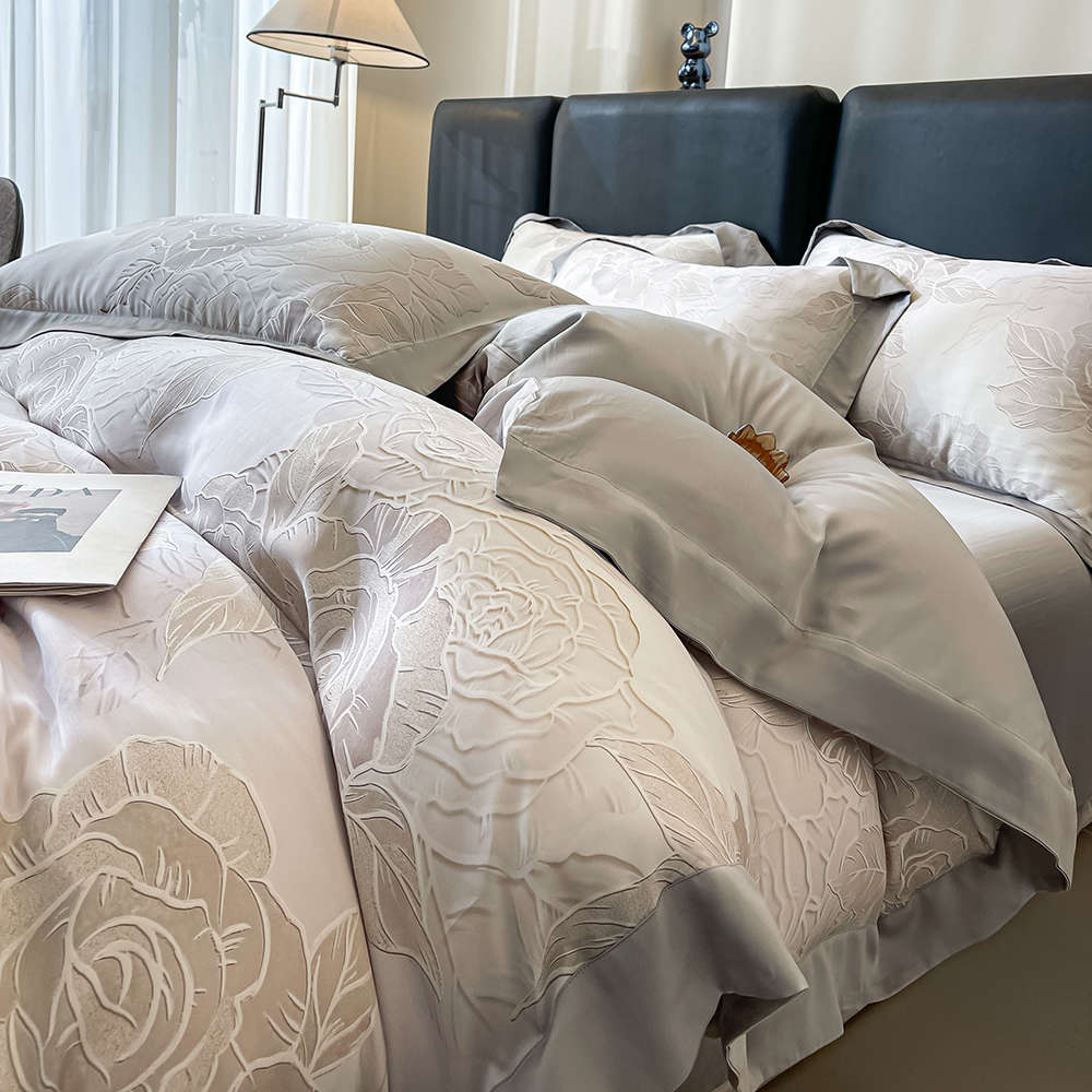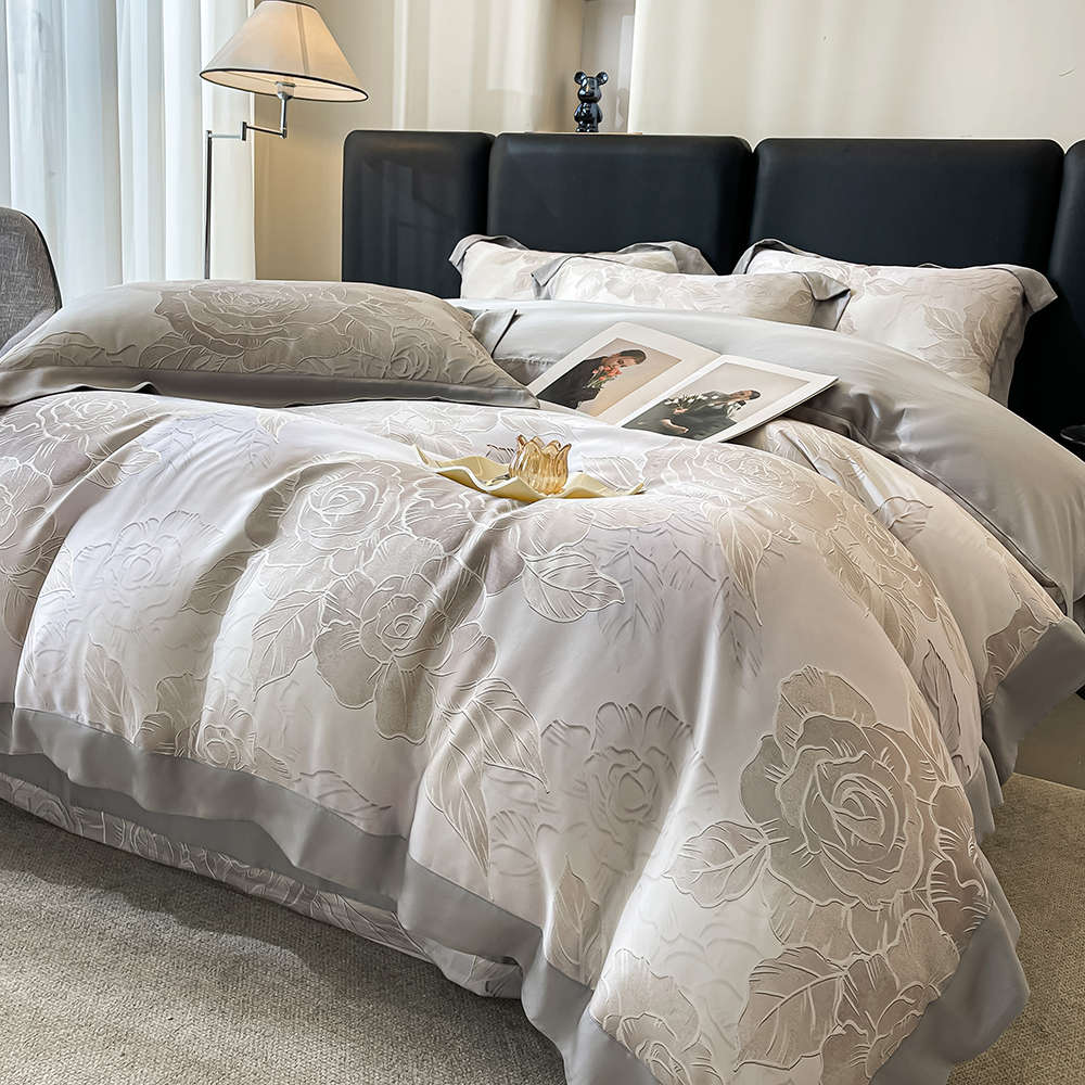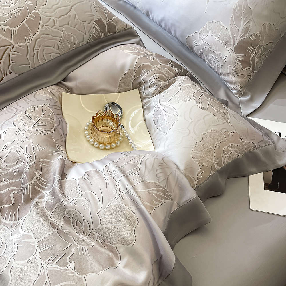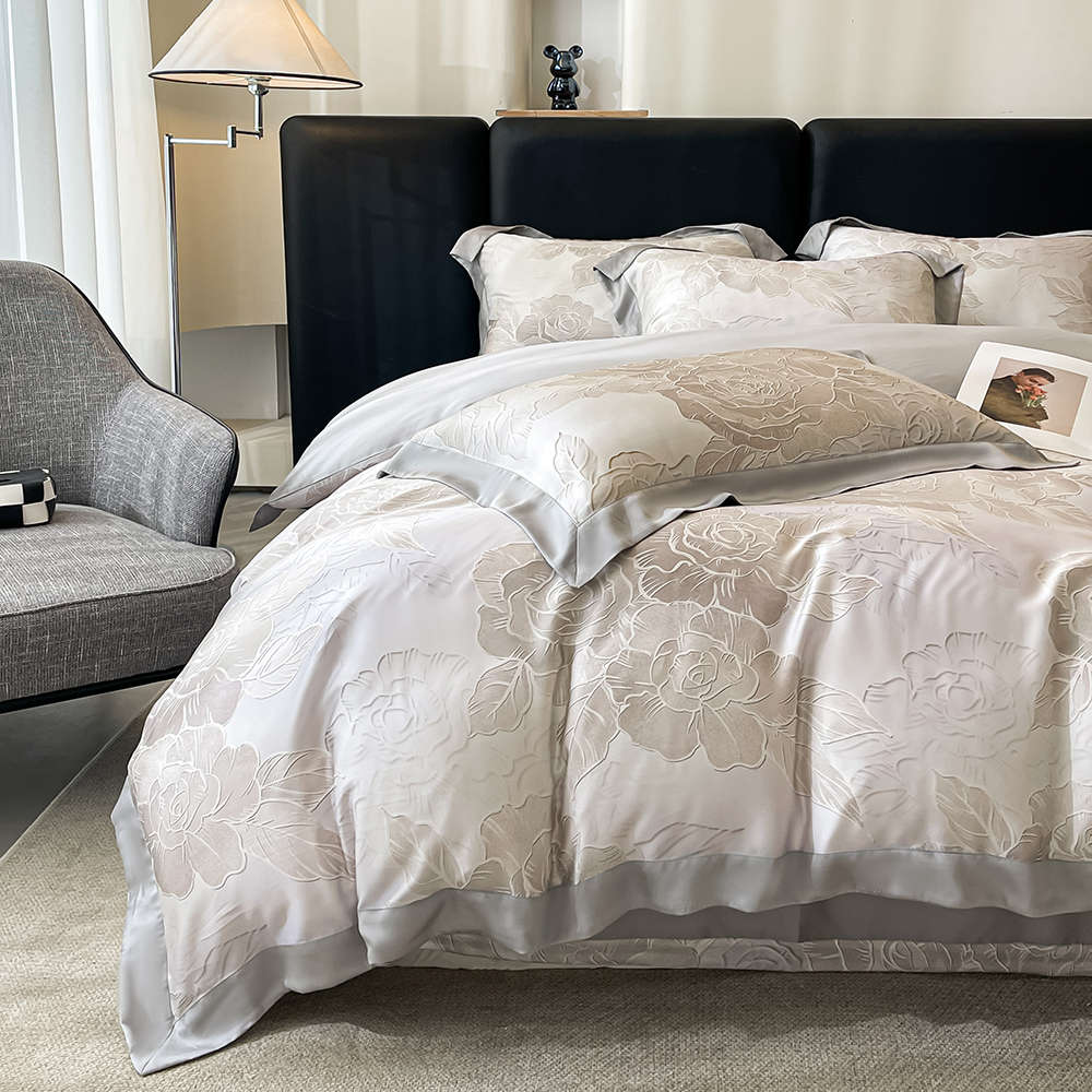 Premium šilkinio Tencelio patalynės komplektas su paklode - "Šilko žiedai" (Natūrali ramybė)